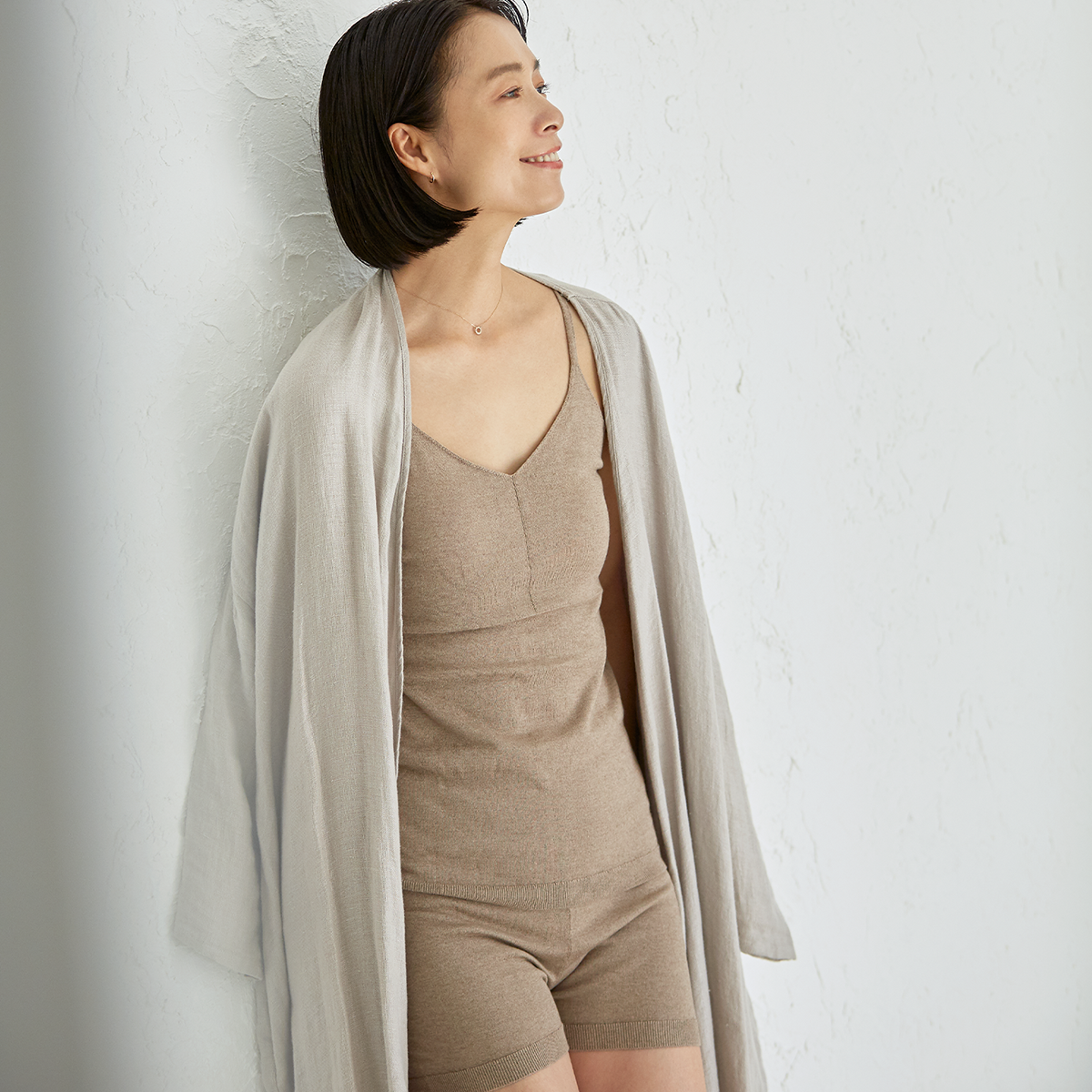 ubu de teateの新たなシリーズ!人気モデルのAYUMIさんとファンの皆様のご意見を元に開発されました。シルクとカシミヤの良い所を合わせた生地で、上質で快適な着心地を体験して下さい。