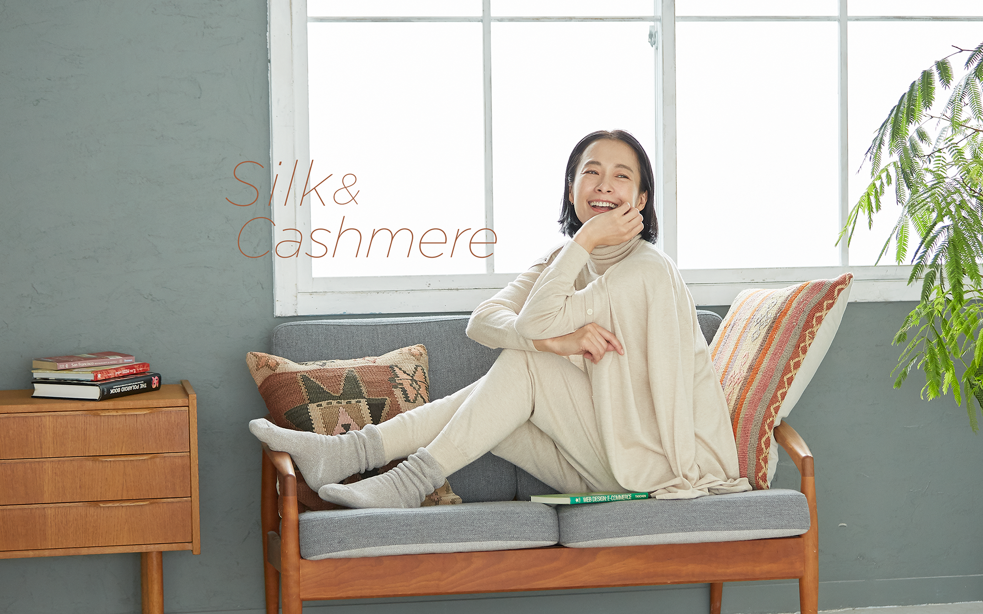 シルクは上質なサラリとした肌触りをもたらし、カシミヤはその上に上品な肌触りを加え、両者の特徴が融合して非常に気持ちの良い肌触りが実現されています。